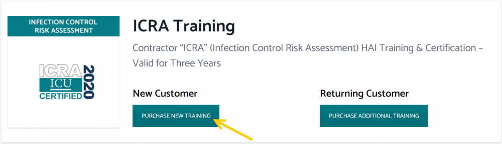 Next, select 'New Customer' to create your account for the ICRA training, as shown below.